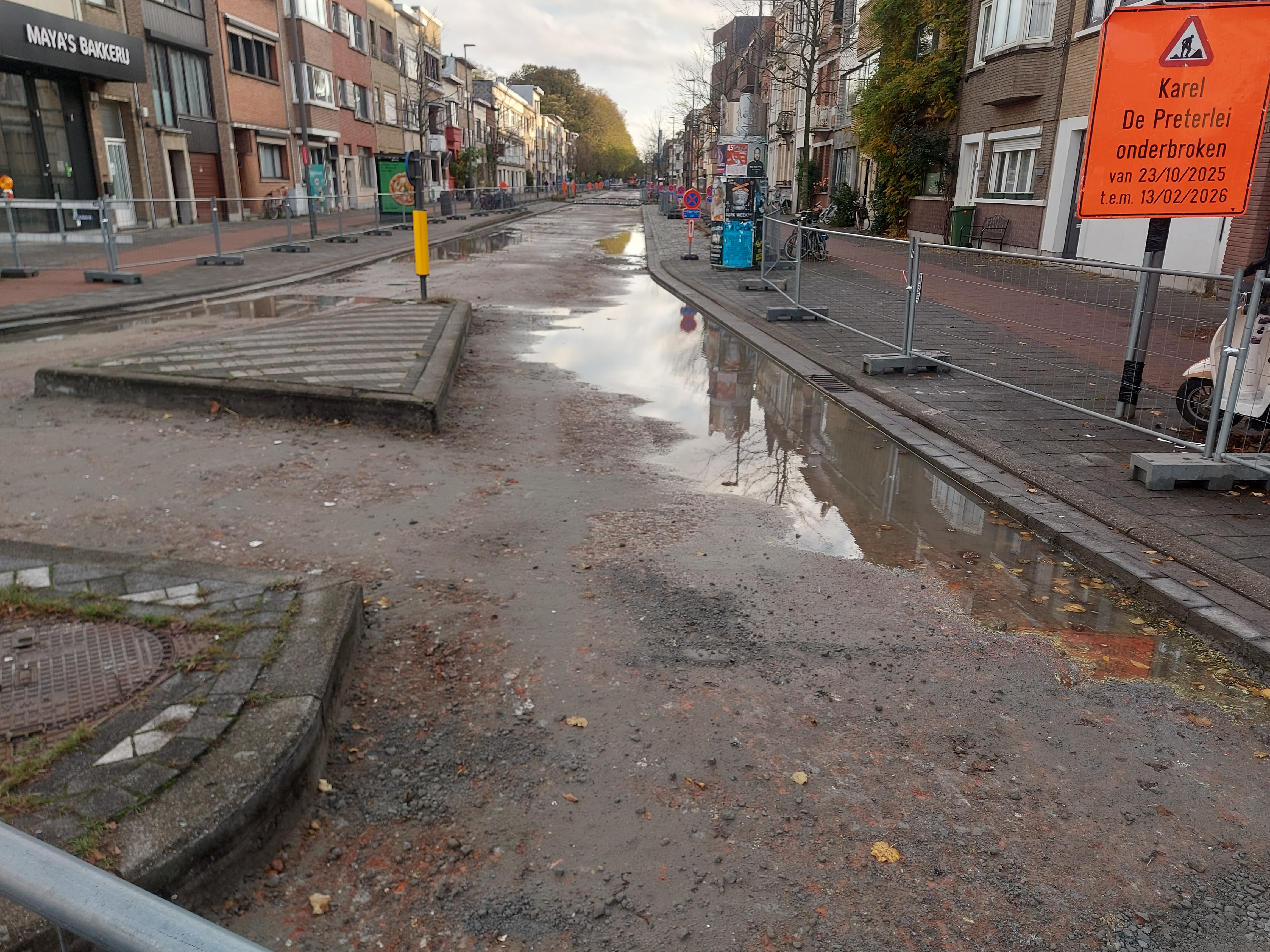 De heraanleg van de Karel De Preterlei is inmiddels in volle gang.